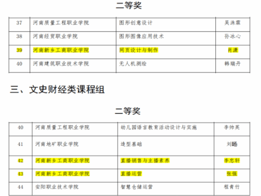 本次大赛中,河南新乡工商职业学院教师团队在三个课程组别中实现突破、斩获佳绩: