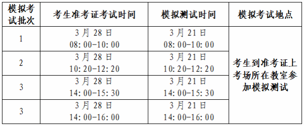 模拟考试批次安排: